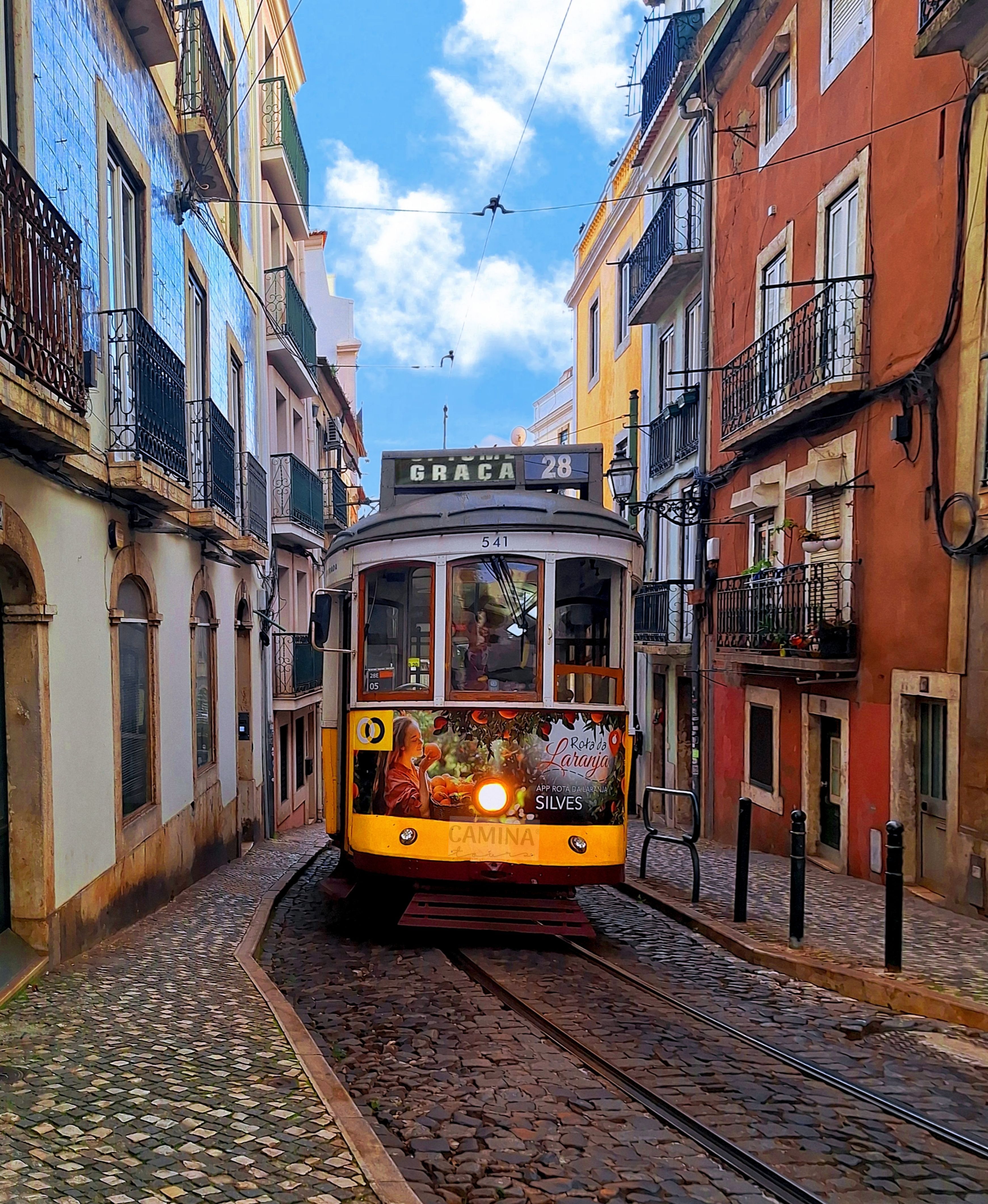 Atravesando el corazón de Bairro Alto, con sus bares, pequeñas tascas y tabernas de fado, tomaremos el tranvía 12E para subir a la histórica colina de Graça, donde la vida cotidiana se muestra sin filtros, con mercados de barrio y tiendas tradicionales.