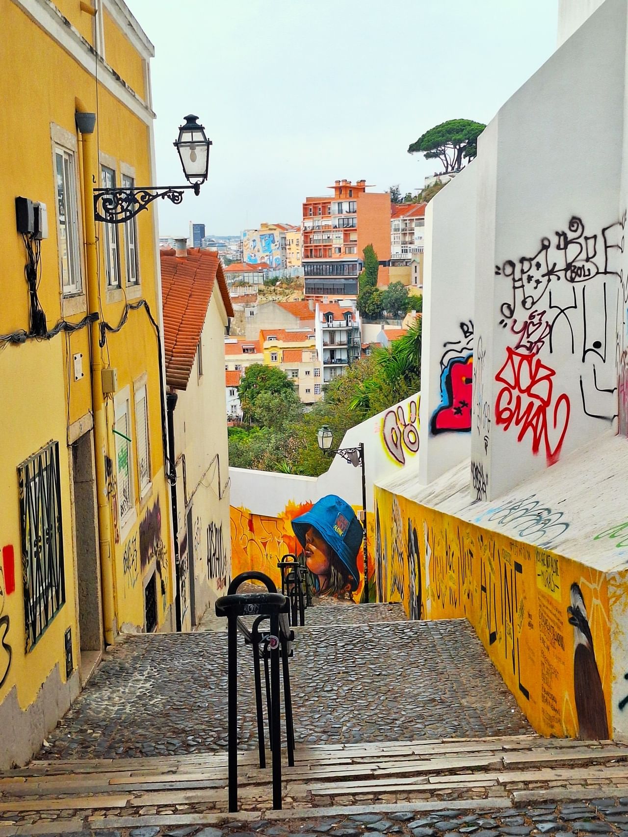 - Galería a Cielo Abierto: Observaremos fachadas con azulejos recuperados, murales y grafitis que rescatan y dialogan con la vida del barrio, formando un verdadero museo de arte urbano al aire libre y con autores portugueses y extranjeros.