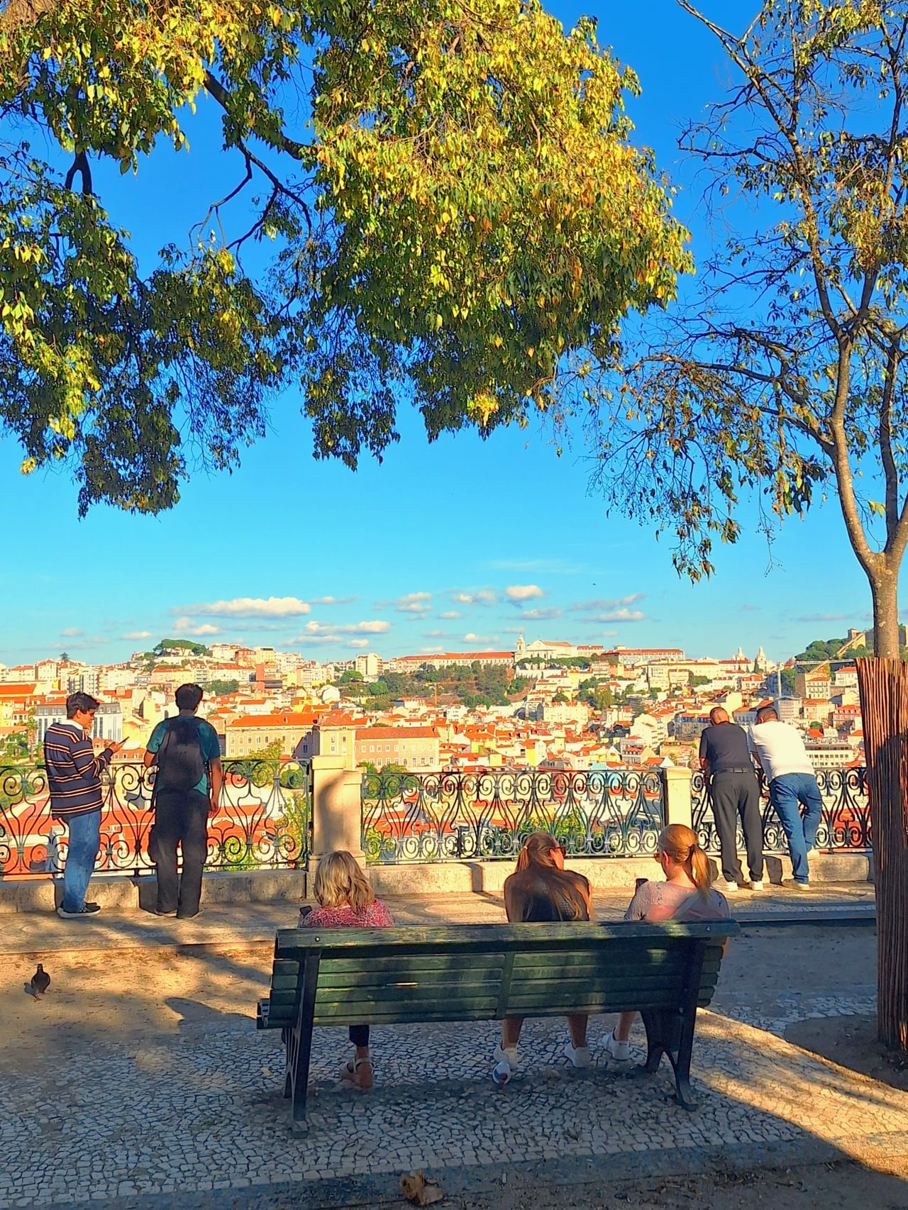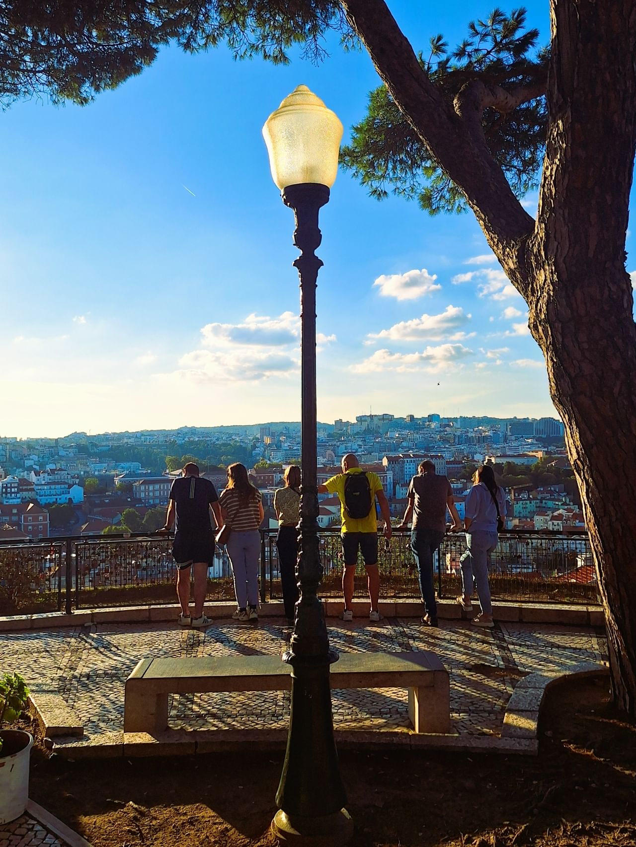 Seguiremos camino hacia el Mirador de São Pedro de Alcântara, uno de los sitios más increíbles de la ciudad, con una panorámica que incluye el Castillo de São Jorge, Parque Eduardo VII, la Estación de Tren de Rossio, y el Convento da Graça, nuestro próximo destino.